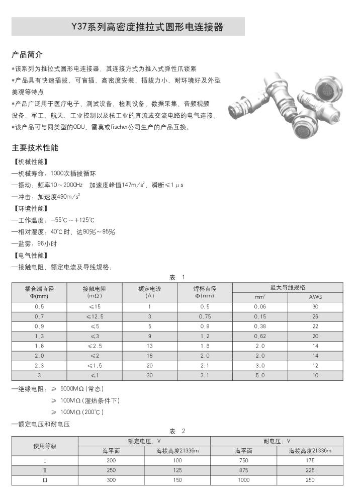 Y37系列高密度推拉式圆形电连接器