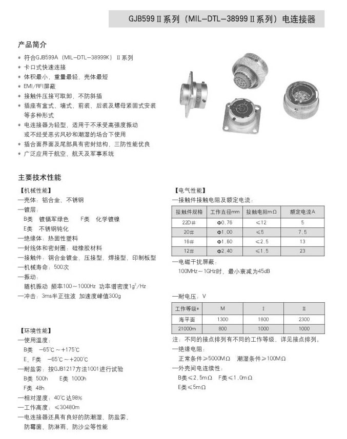 GJB599II系列(MLL-DTL-38999II系列)电连接器