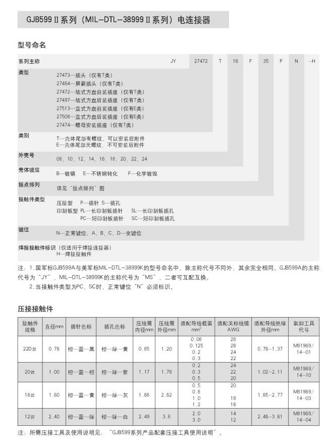 ● 符合GJB599A(MIL-DTL-38999K)Ⅱ系列