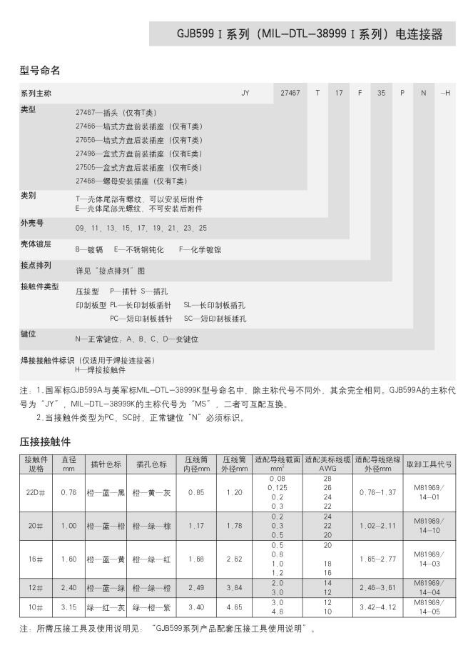 ● 符合GJB599A(MIL-DTL-38999K)Ⅰ系列