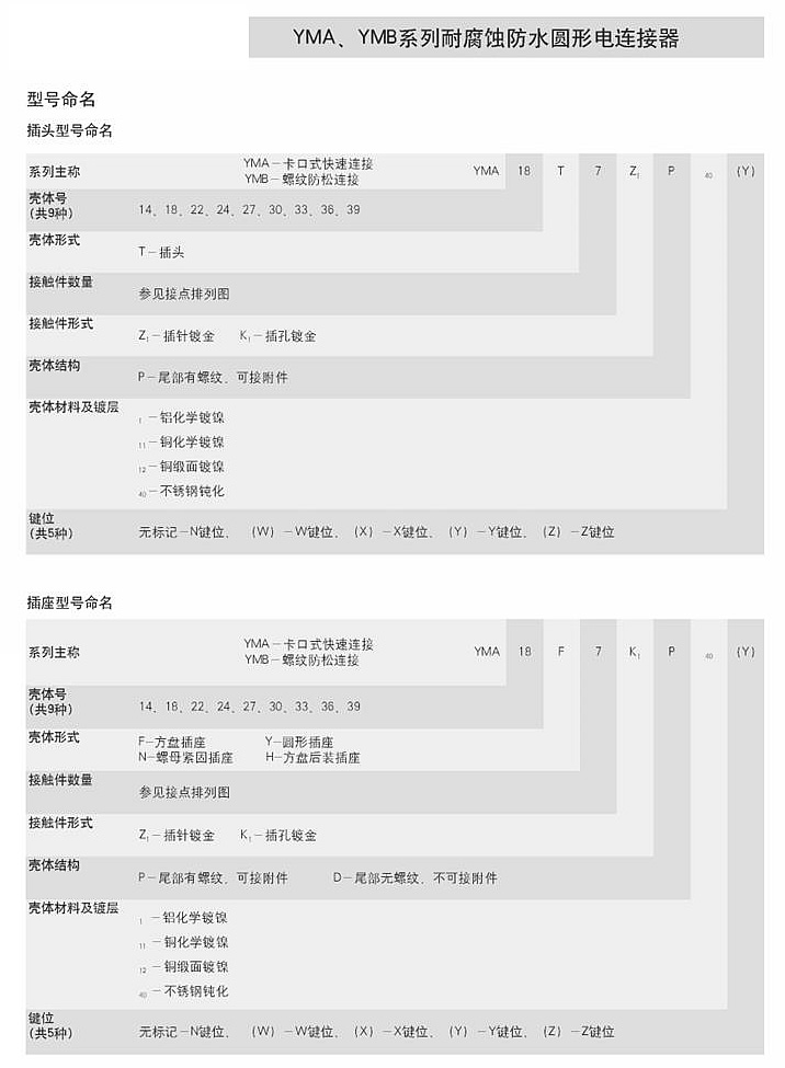 YMA、YMB系列耐腐蚀防水圆形电连接器
