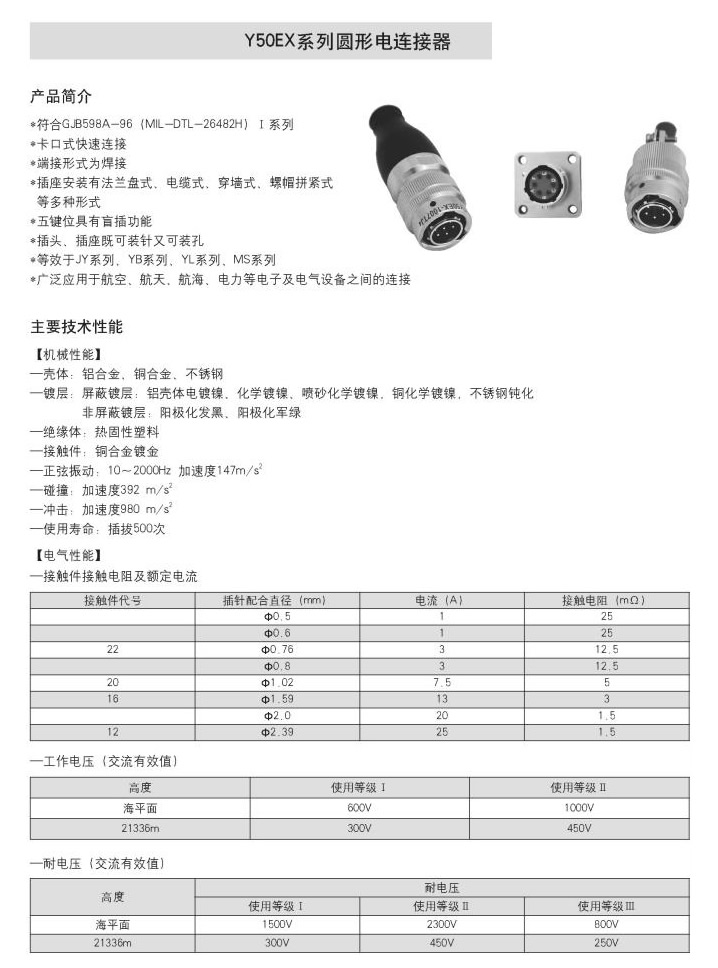 ● 广泛应用于航空、航天.航海、电力等电子及电气设备之间的连接