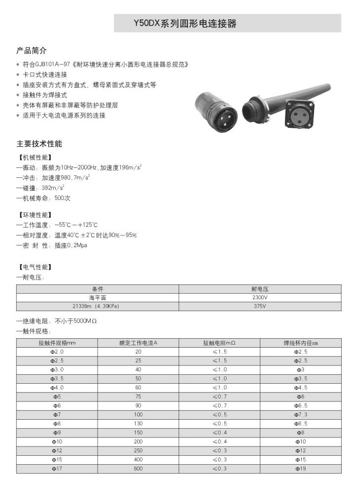 ● 符合GJB101A-97《耐环境快速分离小圆形电连接器总规范》