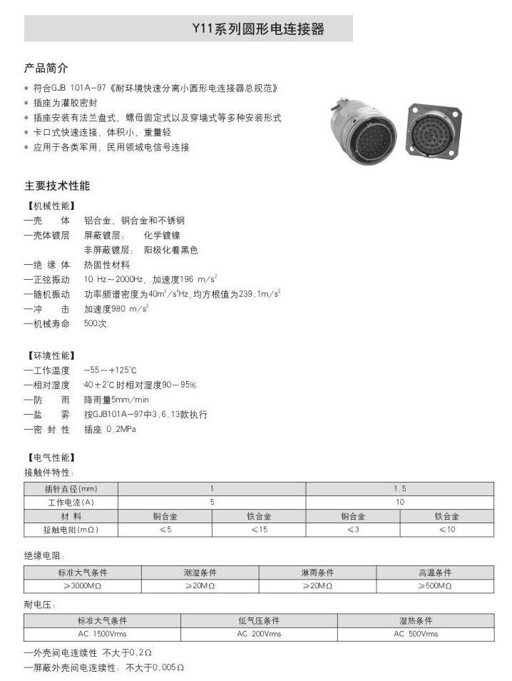 Y11系列圆形电连接器